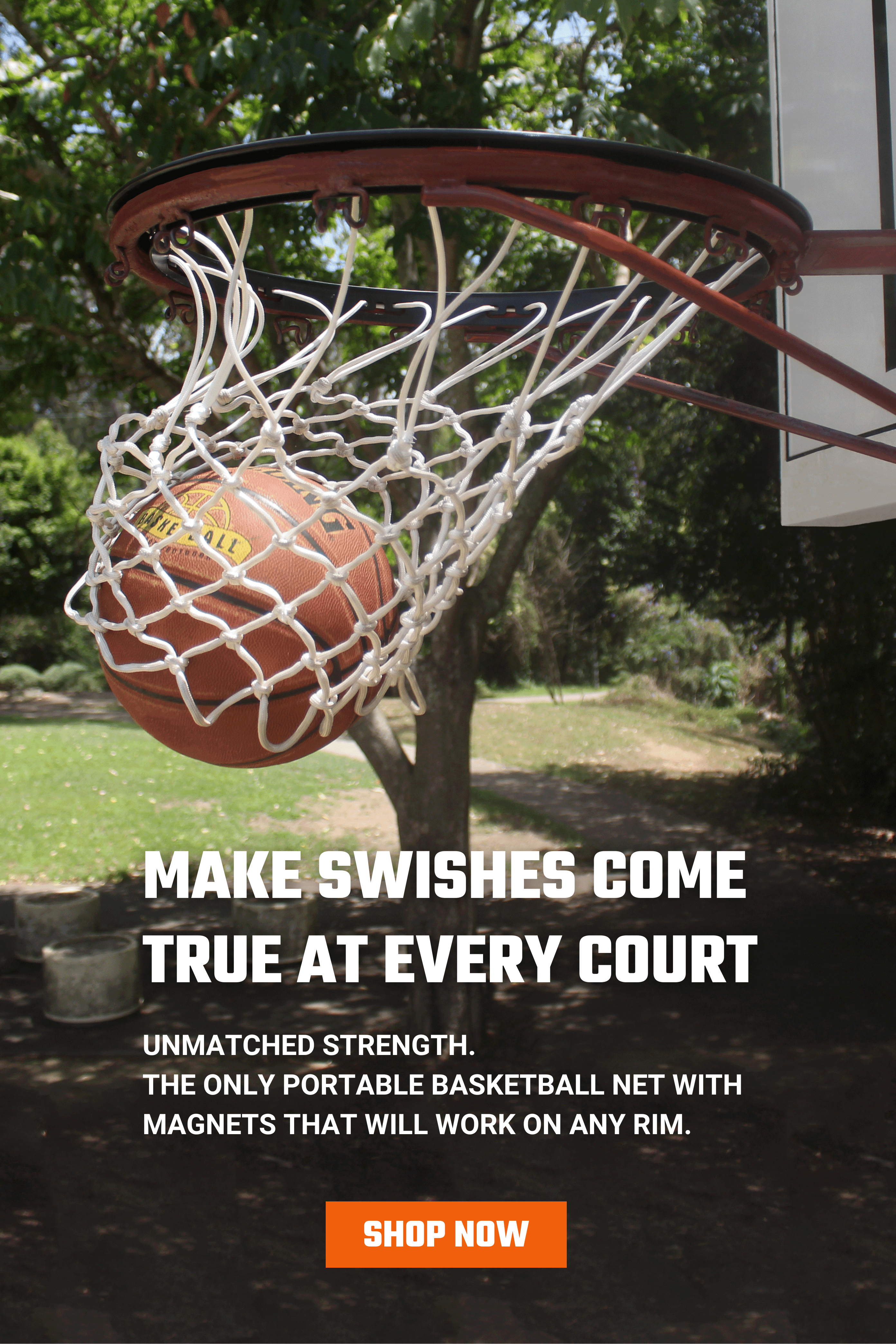 Transform any netless hoop in seconds. Forget ladders, zip ties & sticky tape - all you need is a basketball.